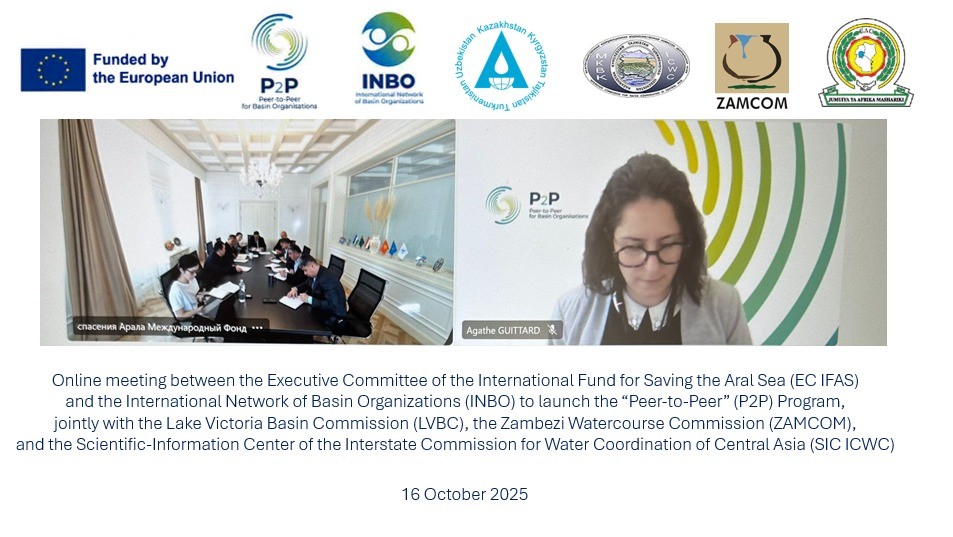 On October 16, 2025, the staff of the Executive Committee of the International Fund for Saving the Aral Sea (IFAS) took part in an inaugural and introductory virtual meeting to launch the Peer-to-Peer (P2P) Program with the International Network of Basin Organizations (INBO), which serves as the moderator of the P2P implementation process.